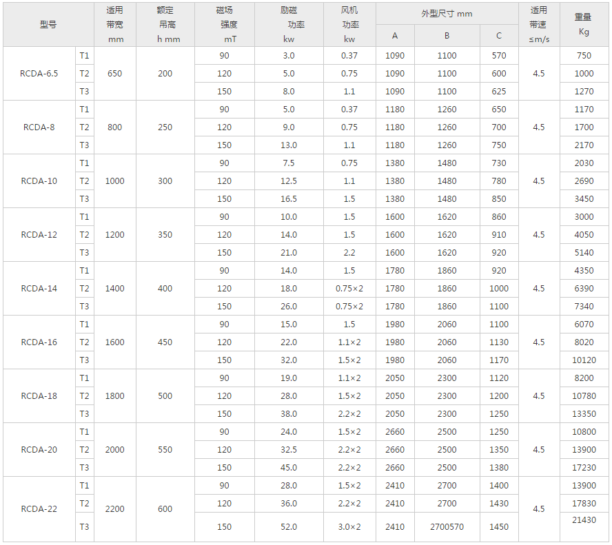 “RCDA型風冷式電磁除鐵器”詳細介紹: