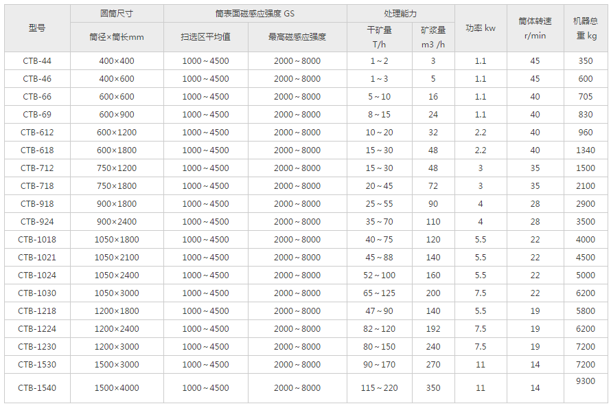 CTB型半逆流濕式磁選機適用于濕式選別礦石粒度為0.5mm以下強磁性物料的掃選和精選,尤其適用于粒度為0.15~0mm礦物的精選。或者除去非磁性礦物中混雜的強磁性礦物。CTB型半逆流濕式磁選機可以獲得高質量的鐵精礦,同時也能較好的回收率,所以半逆流磁選機在生產實踐中得到廣泛的應用。