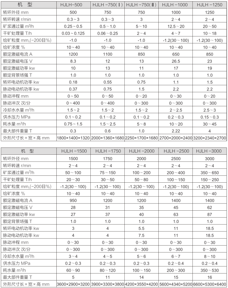 HJLH立環(huán)高梯度磁選機(jī)技術(shù)參數(shù):